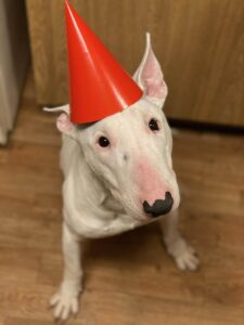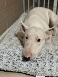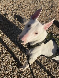 Kenji is a 4-year-old white Bull Terrier in Casa Grande, Arizona, who is sweet, cuddly, and full of goofy personality. He loves walks, playing in the yard, and curling up with his people.