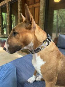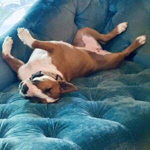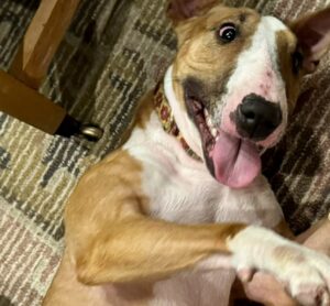 Like any young Bull Terrier, Rosey is full of life—playful, silly, and bursting with personality. She loves attention, thrives on connection with her people, and will absolutely keep you laughing (especially if you hand her a giant cardboard box to run around with).