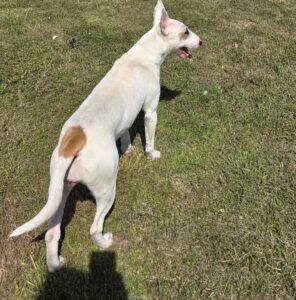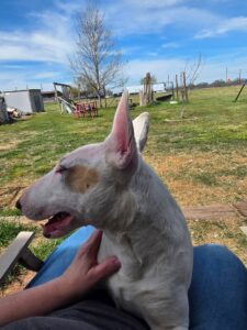 Slink is a young, playful Bull Terrier with all the goofy charm and energy the breed is known for. At about 1 year old, she’s still very much a “big puppy” and can be a little exuberant while she learns her manners.
